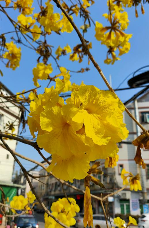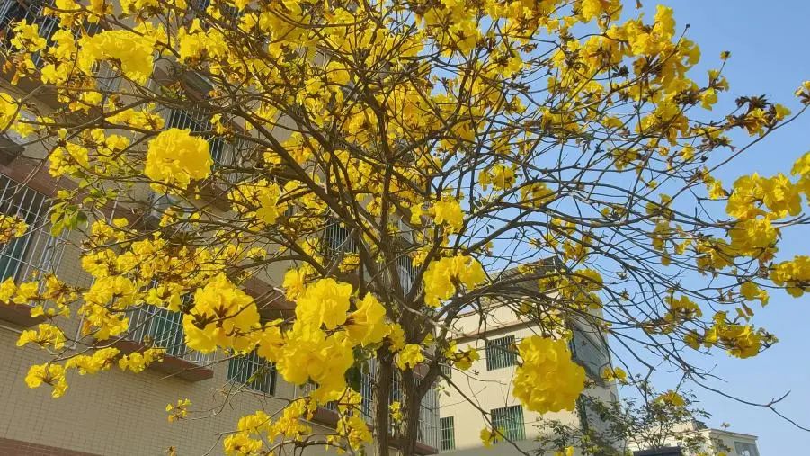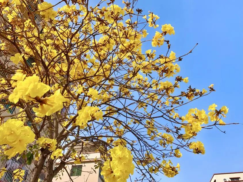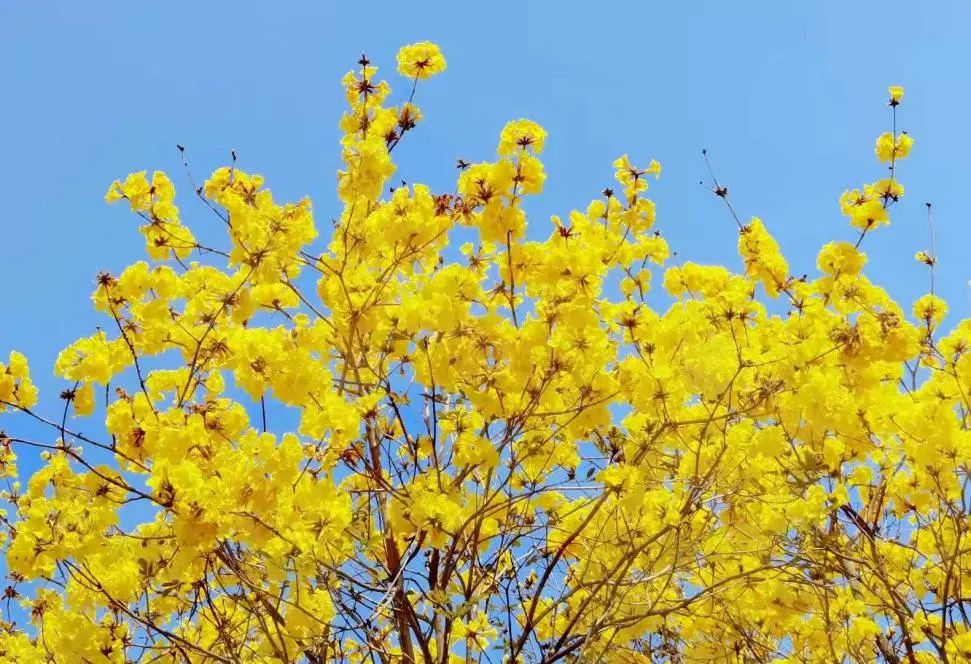 枝头见花不见叶,一路金黄一路香。又到了黄花风铃木绽放的季节,这个往年的“网黄”又来刷屏了,自带滤镜,随手一拍就出大片,手机的256G内存分分钟被它“占领了”。