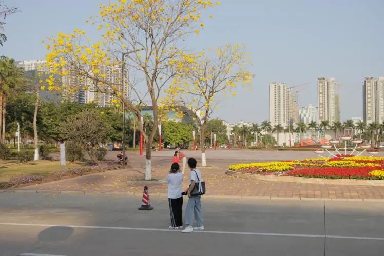 繁枝容易纷纷落,嫩蕊商量细细开。不知不觉,春色已上了枝头,往年三月才开放的黄花风铃木,此时正在火炬区路上尽情绽放!