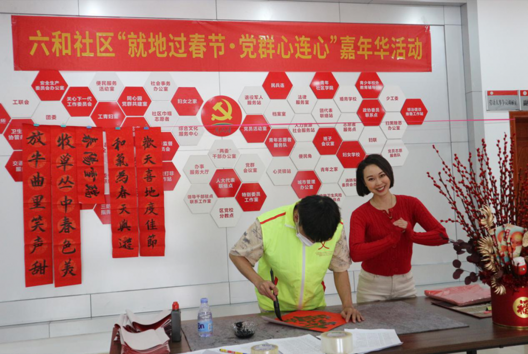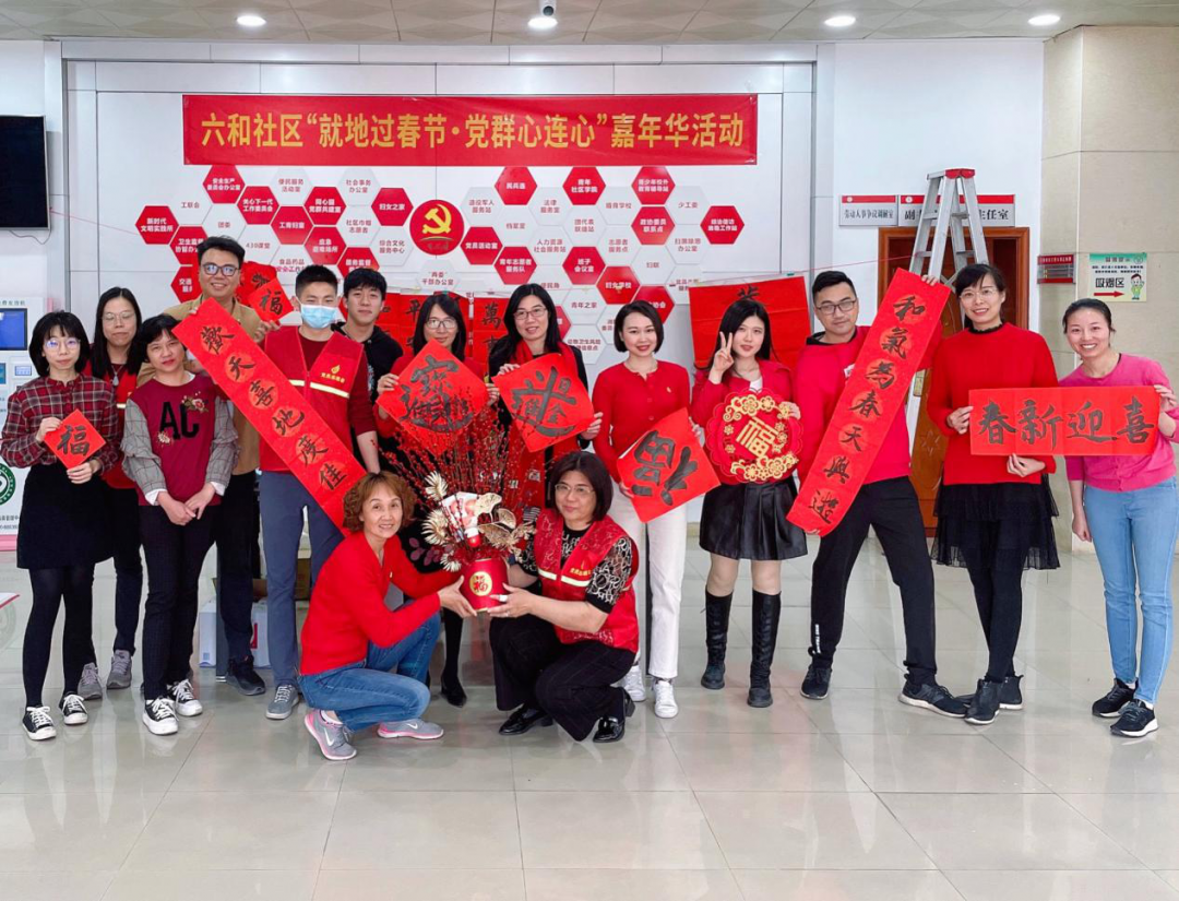 2021年新春佳节即将来临,为深入贯彻落实习近平新时代中国特色社会主义思想和党的十九届五中全会精神,充分发挥六和社区“同心园”党群服务中心的作用,营造喜庆祥和春节氛围,近日,六和社区开展“就地过春节·党群心连心”嘉年华活动,为群众送上新春祝福。