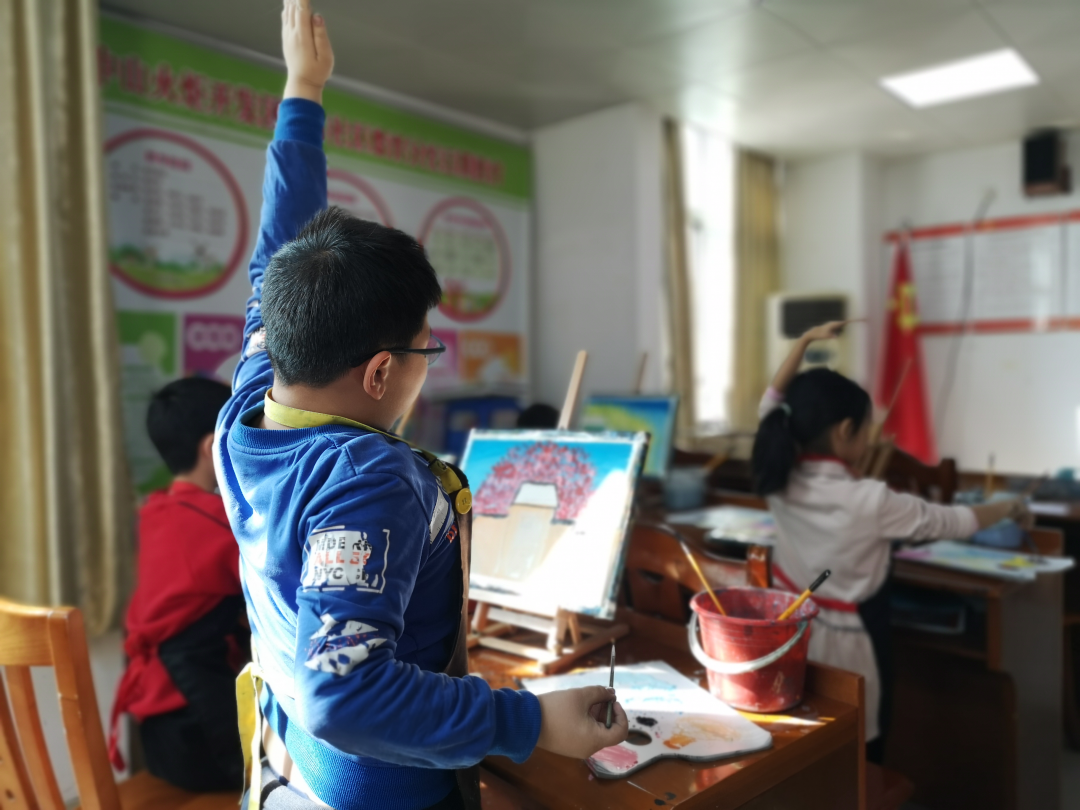 在老师的指导下,一幅幅水彩童画表达着孩子们的童心,也绘画出自己对新年的祝福。