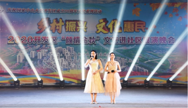 2020年11月17日晚,历时半个月共计13场的火炬区“倾情金秋”文艺进社区展演晚会,最后一场活动来到珊洲小区。