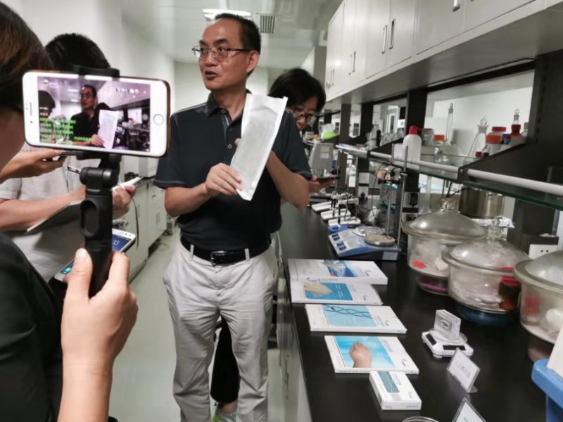 2019年7月13日, “广东推动高质量发展调研行”中央和省级媒体记者来到深圳清华大学研究院,记者通过采访了解到,目前该研究院生物医用材料及植入器械实验室的双层人工真皮、人工颈椎间盘等高技术医疗材料,已走向市场应用,给患者带来福音。