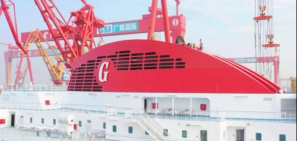 广船公司为瑞典格特兰航运公司制造的双燃料油高速豪华客滚船船长200米,型宽25.2米,设计吃水6.4米,载客量1730人,设有两层车辆甲板,车道长2310米,续航力6500海里,采用国际最先进的“天然气/燃油”双燃料主机驱动,是全球首艘“天然气/燃油”双燃料高速豪华客滚船。该船满足国际海事组织最新“安全返港”的要求,船上任何舱室发生事故或故障,其它舱室的设备依然可以确保船舶安全返回。该船配有1对减摇鳍、1对防横倾舱和1对备用防横倾舱。在遇上风浪的时候,减摇鳍将像机翼一样展开,以保证船舶航行平稳。
