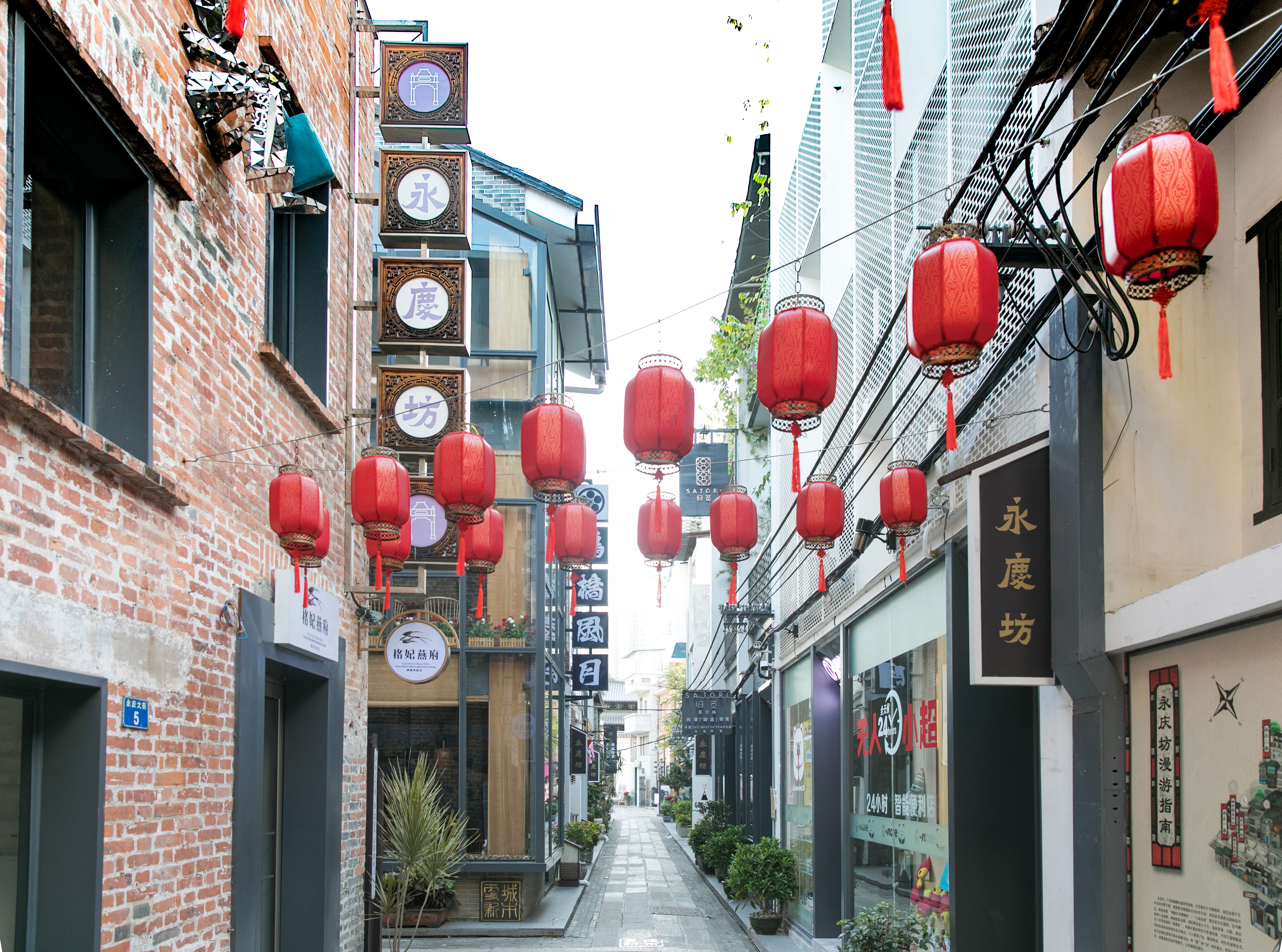 永庆坊位于具有百年历史、广州最美老街之一的恩宁路。2016年,永庆坊遵循“修旧如旧”原则,通过“旧城微改造”,从一个危旧房集中的片区,摇身一变成为充满文化气息的城市地标,更采用市场化运营的方式,为老城发展注入更多新活力。