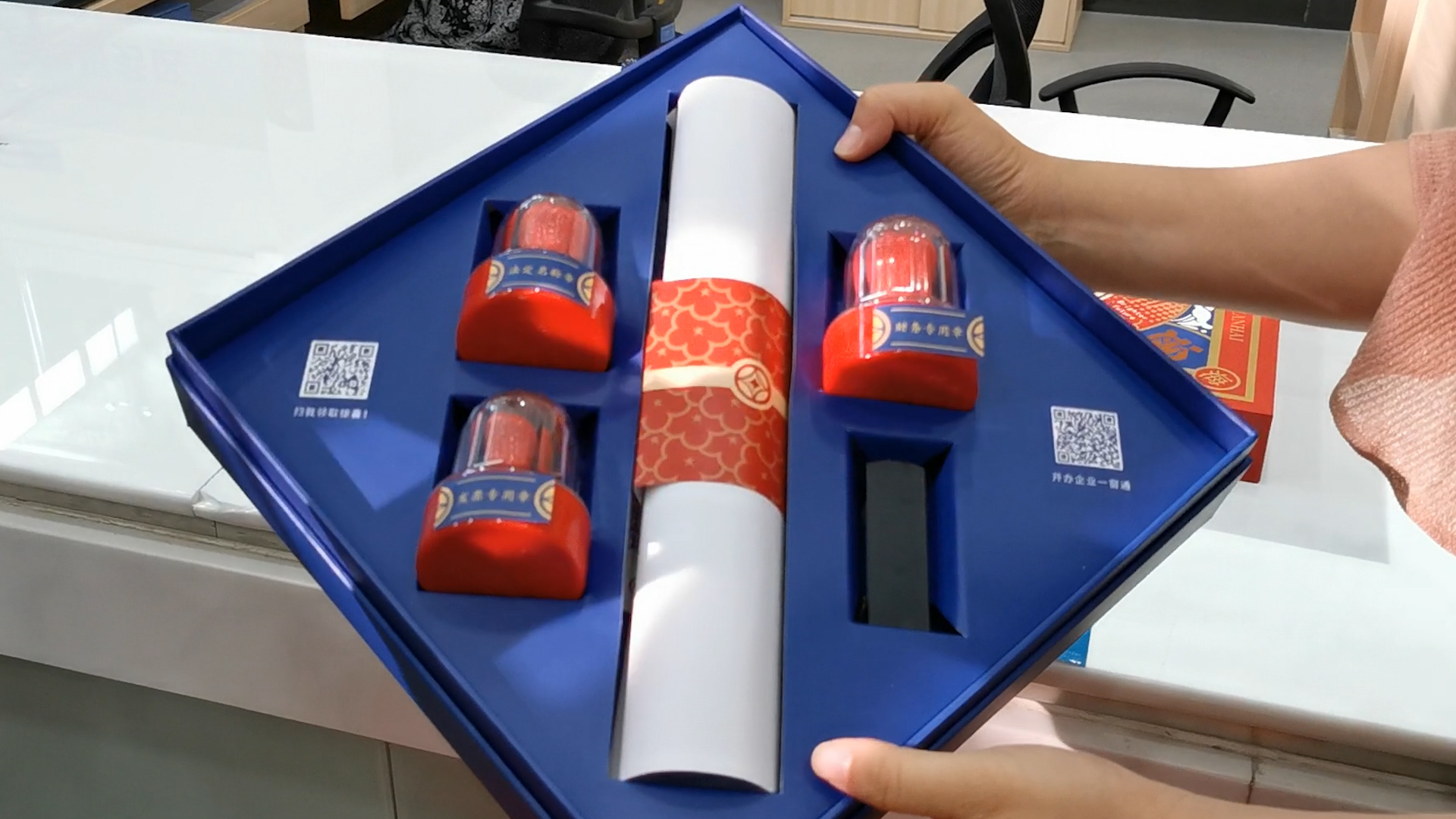 在简化优化审批流程上,前海发力打造“一口受理、一门审批、一网服务、一颗印章”的创新政务服务模式。前海e站通服务中心还为企业精心设计了前海惠企盒子“e-box”,里面有营业执照、企业公章、税盘、发票等企业开办必需品。同时,企业开办一窗通、e企惠等“互联网+政务服务”的二维码也在其中。